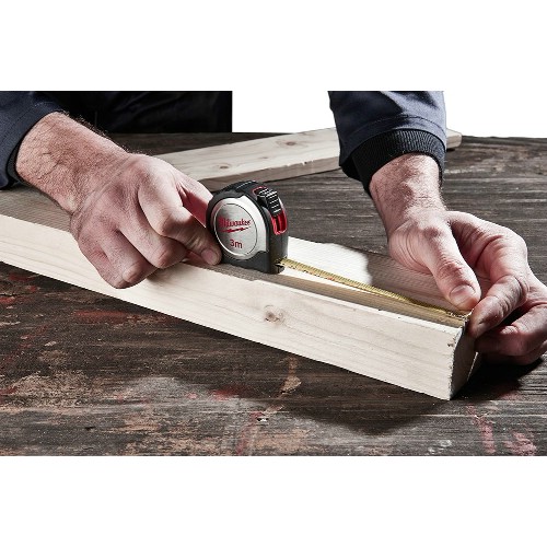 Mätband med kompakt design. Dubbelsidigt nylonband, 4-punkts förstärkt ram, innerhus av ABS-plast och rostfritt stålhölje för extra hållbarhet. Slagtålig och stötdämpande tillbakarullning av nylonbandet för maximal hållbarhet. Kvalitativ krok med två fästningar för precisa mätningar. Gummibelagt greppområde för extra komfort och hållbarhet.