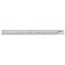 Härdat rostfritt stål. Med mattförkromad yta för bländfri avläsning. Graderade med millimeter i överkant, halv millimeter i underkant och röda decimetersiffror. Baksidan blank. Tolerans ± 0,3 mm.