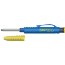 Penna med två funktioner. 45 mm lång spets i rostfritt stål med frammatningsmekanik. Med det gula höljet fungerar pennan utmärkt för märkning och skrivning, utan det gula höljet fungerar pennan utmärkt för exakt djuphålsmärkning. Tålig design med clips och integrerad vässare i tryckknappen. Mycket exakt märkning tack vare liten stiftdiameter (2,8 mm). Ergonomisk trekantig design som ligger skönt i handen. Påfyllningsbar med olika stift för nästan alla typer av ytor och material. Levereras med 1 st universalstift i grafit för uppruggade och släta ytor.