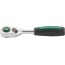 Spärrskaft med 1/4" fyrkantfäste. Greppvänligt 2-komponentshandtag. Spak för omställning mellan höger- och vänsterdragning. QuickRelease-säkerhetslås håller hylsan på plats och lossas med knapptryck. 80 tänder. Användbar vid trånga utrymmen, med omtagsvinkel 4,5°.