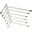 Insexnyckelsats i 6 delar i metriskt utförande. Nycklar av t-handtagsmodell med nyckelgrepp i 3 ändar. Flyttbar t-stång med säkerhetsstift. Förkromad yta. Svartoxiderade spetsar. Längd som ger bra åtkomlighet och hävstångseffekt.