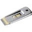 Professionell glasskrapa med utskjutbart rektangulärt blad, tryckknapp i mässing och metallhölje. Förnicklad. Perfekt för borttagning av färg och lim. Levereras med 5 blad.