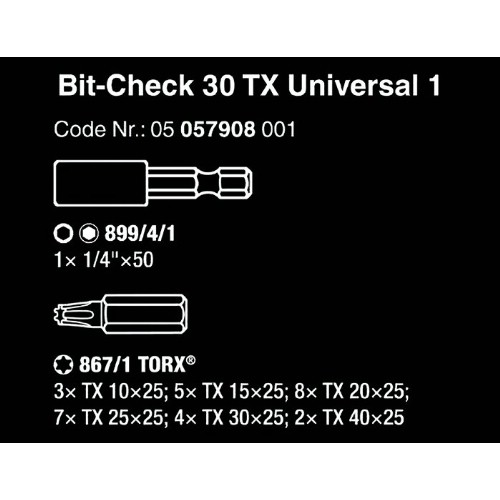 Bitssats 1/4" WERA Bit-Check 30 TX Universal 1
