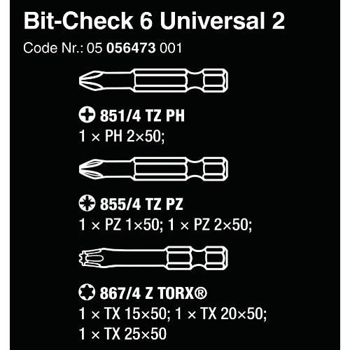 Bitssats 1/4" WERA Bit-Check 6 Universal 2