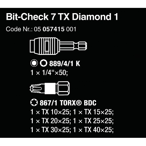 Bitssats 1/4" WERA Bit-Check 7 TX Diamond 1