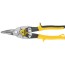 Fasonsax med utväxling. Svagt tandade skär. Plasthandtag med upphängningsögla. Med returfjäder och låsbleck.
