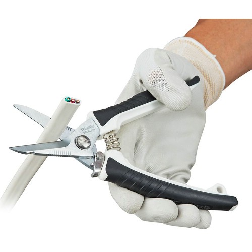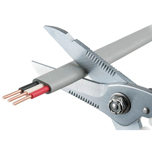 Universalsax med hårdkromaterade skär. Klipper kablar upp till 2,0 mm och metallplåt upp till 0,5 mm. Utrustad med spår för enklare gradning av borrade hål. Praktisk låsfunktion. Greppvänligt tvåkomponentshandtag.