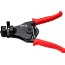 Automatisk - tråden hålls fast under det att isoleringen genomskäres och drages av. För kabelarea 0,5-6,0 mm². Skalar såväl solida som tvinnade kablar. Samtliga ledningsdimensioner insättes från samma sida. Med trådavskärare. Returfjäder. Plasklädda skänklar.