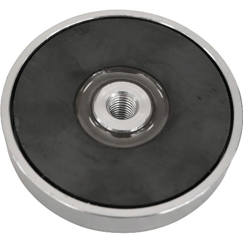 Toppmagnet med hög magnetisk styrka, stålhölje och solid gängad bussning. Kan användas i arbetstemperaturer upp till 100°C.