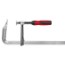 Skruvtving helt av stål. Med profilerad skena. Kulledad tryckbricka. Glansförzinkade. Tvåkomponents-handtag.