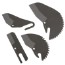 Röravskärare för plastmaterial PE, PP, PB, PEX, MLP/MSR, VPE, CPVC, PVC och PVDF. Med utväxling som minskar kraftbehovet. Knapp för snabblossning av skäret, som byts enkelt utan verktyg. Skäret sitter infällt i verktyget, vilket minskar risken för skador, och är rostfritt med PTFE-beläggning. Grepp av gummi på de större storlekarna (411-42 och 411-63). Justerbart system för rör upp till 50 mm på modell 411-63.