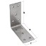 Vinkelbeslag huvudsakligen för användning vid kryssförband i trä, t ex mellan takstol och hammarband, vid förankring av takåsar till bärande bjälkar samt vid pelar-/balkinfästningar. Kan även användas vid bultinfästning i betong, lättbetong eller tegel. För fastsättning används rostfri ankarspik 4,0 eller rostfri ankarskruv 4,8. För fastsättning i betong använd rostfri M10-bult.