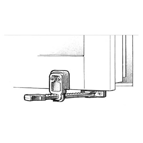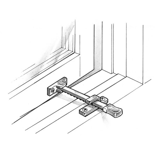 Vädringsbeslag för inåtgående- och utåtgående fönster med överfalsad båge och för fönster med karmdjup mindre än 32 mm. Passar både höger och vänsterhängda fönster. Tillverkad av acetatplast.
