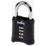 Hänglås av pressgjuten zink med dubbelreglad bygel av härdat stål. Inställbar kodkombination, fyrsiffrig. Bredd 55 mm.