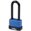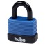 Hänglås av aluminium med skyddande plastöverdrag, nyckelhålsskydd och dubbelreglad bygel av härdat stål. Levereras med 2 st nycklar per hänglås.
