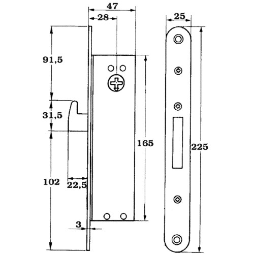 Användningsområde: Låshus för entrédörrar i butiker, varuhus, kontor etc. vars konstruktion utgörs av smala ramprofiler. Låset kan användas på terrass- och balkongdörrar om spanjolett saknas.