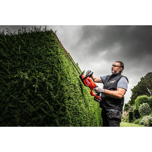 Kraftig 18 V Li-Ion hekksaks med Powerstate børsteløs motor. Dobbeltslipt og dobbeltvirkende blad for effektiv kutting av tykkere greiner. 32 mm mellom tennene med kraft til å kutte 25 mm harde greiner. Optimalisert ergonomi med dreibart håndtak med fem posisjoner og økt brukerkontroll ved at vekten holdes nær brukeren. Knivspissbeskyttelsen beskytter og forhindrer utilsiktet skade på gjerder eller andre gjenstander. Jam-Clear-teknologi som gjør det mulig å endre knivretningen med hvert trykk på avtrekkeren, noe som gjør det enkelt å fjerne alle typer knivstopp. En times driftstid med ett M18 Forge 8,0 Ah-batteri. Fleksibelt batterisystem, fungerer med alle Milwaukee M18-batterier.