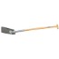 Med extra långt skaft. Linoljat träskaft i ask med kryckhandtag. Blad tillverkat av härdat stål. Används vid dränerings- och kabelarbete.