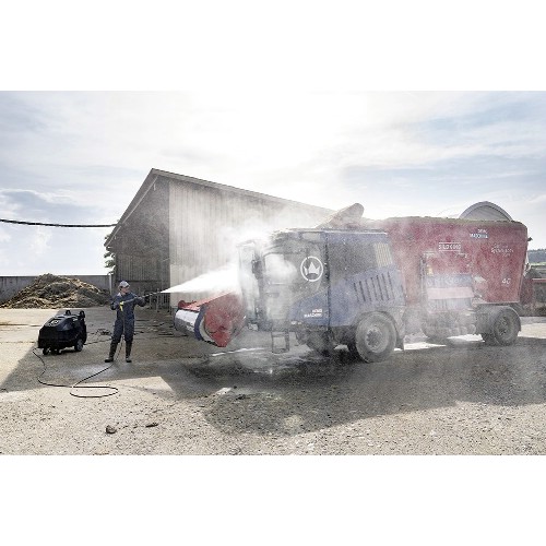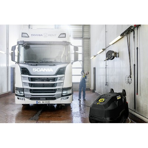 Kraftfull och användarvänlig hetvattentvätt med lågvarvig, 4-polig, vattenkyld 3-fas elmotor och en robust 3-pistons axiell pump med keramiska kolvar. Anniversary Edition-utförande. Ekonomiskt eco!efficiency-läge och optimerad brännarteknik. Lätt tillgängligt vattenfilter skyddar pumpen mot smutspartiklar i vattnet. Säkerhetsventiler samt skydd för vatten- eller bränslebrist säkerställer driftssäkerhet på maskinen. SDS-systemet kompenserar för vibrationer och tryckstötar i högtryckssystemet. Start-/stoppautomatik. Två krokar för sugslang samt strömkabel och rymligt förvaringsutrymme för rengöringsmedel, handskar eller verktyg. Bekvämt och egonomiskt spolhandtag EASY!Force Advanced. Tryck och flöde på vattnet kan justeras med Servo Control-reglaget som sitter mellan lansen och pistolen. Dubbla rengöringsmedelstankar, enkelt att växla mellan tank 1 och 2. Exakt dosering av rengöringsmedel med sköljfunktion. Stora hjul som förenklar manövrering. Tryckhandtag för enkel transport och manövrerbarhet. Användarvänliga reglage, ett vred för alla funktioner. Kontrollpanel med indikationslampor.