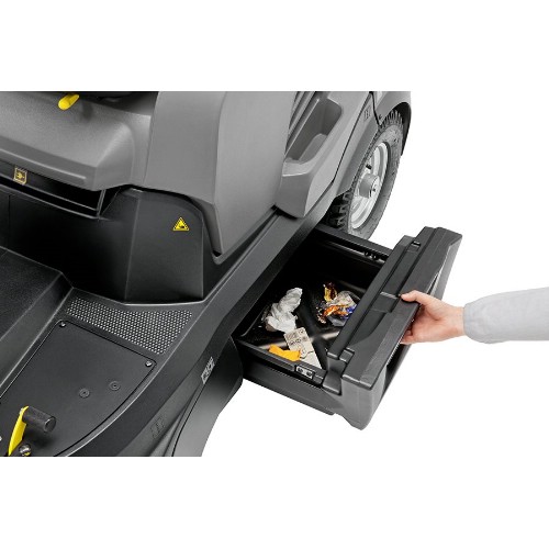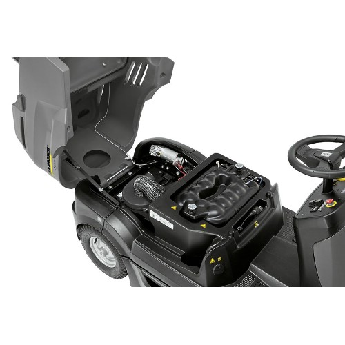 Åkbar sopsugmaskin för effektiv och näst intill dammfri uppsopning av inom- och utomhusytor från 1500 m² och uppåt. Batteridrift med underhållsfria batterier och integrerad laddare. Fram- och backfunktion. Damm som uppstår vid sopning sugs in och behålls i maskinen. Lätt att använda tack vare EASY-operation där val av inställningar görs via ett vred med tydliga symboler. Effektiv helautomatisk, kontinuerlig filterrengöring som ger dammfri drift. Kompakt filterstorlek med lång livslängd. Lättåtkomligt filter. Pendlande huvudsopvals som kan ställas in och anpassas till ytan. Pneumatiskt styrd sidoborste. Behändig mobil sopbehållare. Sugfunktion med justerbar sugeffekt. Avstängningsbar sugfunktion. Grovsmutslucka. Batteriindikator och timräknare. Plats för tillbehör som ökar flexibiliteten, extrabehållare eller andra städredskap kan fästas säkert på maskinen. Maskinen kan komplettteras med sidoborste på vänster sida.