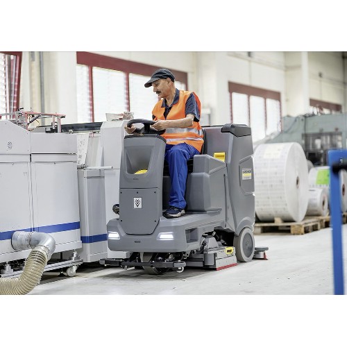 Smidig och effektiv åkbar kombiskurmaskin med batteridrift. Perfekt för butiker, köpcentran, sjukhus, skolor, tillverkningsindustrier, lagermiljöer etc. Batterisats på 24 V, 170 Ah som ger en driftstid på 2,5 h. Energibesparande eco!efficiency-läge, ger minskad strömförbrukning och 40% längre drifttid per batteriladdning. Ännu tystare och därigenom idealisk för bullerkänsliga områden (rengöring dagtid, sjukhus, hotell, osv.). Borstvalshuvud med arbetsbredd på 750 mm och integrerad sopfunktion. Gjort av helgjuten aluminium med stora kanthjul. Sparar tid med integrerad våtsopning av skräp. Tyst drift för användning i ljudkänsliga områden. Robust sugskrapa med sugbredd 950 mm, gjord av helgjuten aluminium. Med slitstark, rivsäker Linatex-suglist för utmärkt uppsugningsresultat. Snabbt och enkelt utbyte av suglister. Flexar vid kontakt med vägg och förhindrar skador. 2-tanksystem, färskvattentank på 110 l och smutsvattentank på 110 l. Körljus för dagtid. Utrustad med Kärcher Intelligent Key System (KIK) med över 30 användarspråk och individuella användarrättigheter. Stor display för inställning av alla viktiga funktioner på över 30 språk och lättförståeliga, färgkodade reglage gör maskinen enkel att använda.
