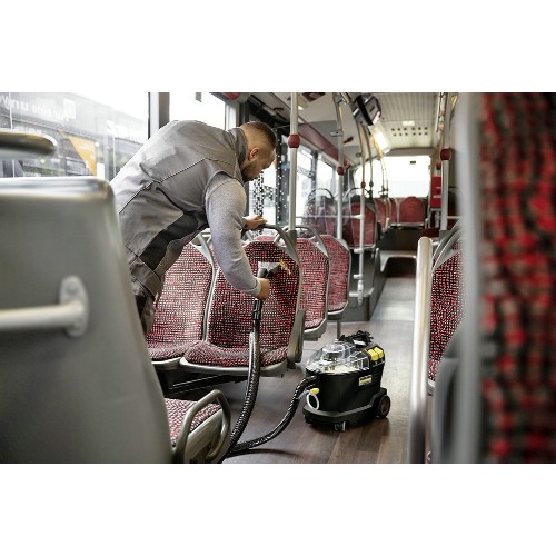 Kompakt och effektiv textiltvätt i Anniversary Edition-utförande. Avsedd för intensiv djuprengöring, punktinsatser och fläckborttagning på textila ytor, möbler och bilinredningar. Ergonomiskt utformat, kompakt handmunstycke som kommer åt även i trånga utrymmen. Handmunstycket sprayar in rengöringsvätskan i materialet och avlägsnar både vätska och smuts ur materialet. Hög uppsugningsförmåga minimerar mängden kvarvarande fukt vilket förkortar torktiden. Rengör snabbt med 1-stegs-funktion, kombinerad spray och uppsugning i ett svep, eller genom 2-stegs-funktion, spraya textilytan, låt verka och sug därefter torrt. Stora knappar för de olika funktionerna. Transparenta lock och munstycken. Avtagbar smart 2-i-1 behållare. Säker och snabb påfyllning av renvatten via stor öppning. Tydlig indikation på max fyllnadsnivå. Enkel tömning av smutsvatten. Integrerad förvaring för handmunstycket. 7,5 m nätkabel. Vikbar krok för säker förvaring av sladd. Ergonomiskt bärhandtag. Stora bakhjul och svängbara styrhjul för enkel manövrering även på ojämna ytor.