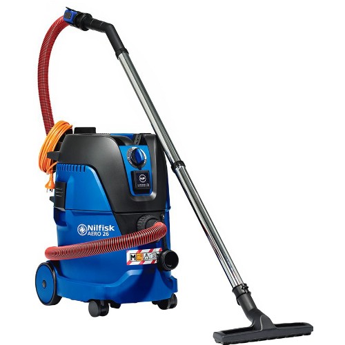 Hendig og effektiv støvsuger på 1000 W. Stillegående og perfekt egnet for hoteller, restauranter, sykehus, men også i den private husholdningen. Plastikk beholder. Med to store hjul og to svingbare hjul ruller den lett på alle overflater. Genererer en maksimal sugeeffekt på 24,5 kPa (245 mbar). Fotbetjent bryter. Kontinuerlig justerbar sugekraft. Beskyttelseslist rundt omkring sørger for at den slagfaste 7-liters beholderen ikke skader møbler. Fleecefilterpose som standard, tåler opptil tre ganger så mye støv som standard papirfiltre. Et seks-trinns filtersystem sikrer en meget god retensjonsgrad. I tillegg til fleecefilterposen med sine tre lag, holdes avtrekksluften ren via et motorbeskyttelsesfilter, et utslippsfilter og et permanent hovedfilter. Hovedfilteret er laget av vaskbart nylon slik at maskinen kan brukes uten støvsugerpose. Sikkerhetsklasse II.