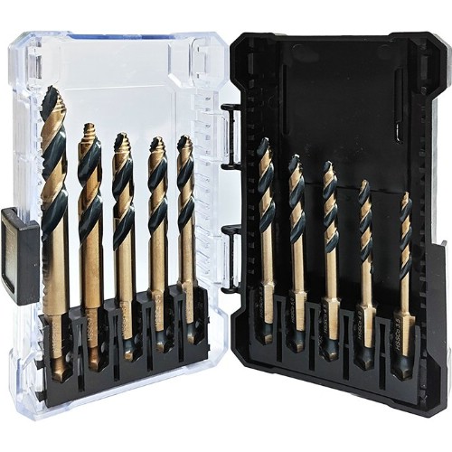 Borr- och försänkarsats med hållare, förborr, försänkare nr 8, nr 10, nr 12, 2 st bits PZ2 och 2 st bits PH2.