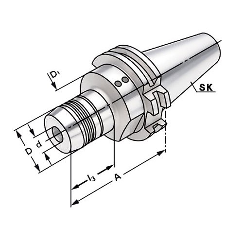 För verktyg med cylindriska skaft enl. DIN 1835 form A+B+E och DIN 6335 form HA+HB+HE (för Ø 20 mm och Ø 32 mm kan reduceringshylsa användas).