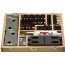 Sortiment av spännverktyg för verktygsmaskiner med T-spår. Levereras i träetui.