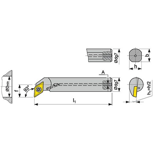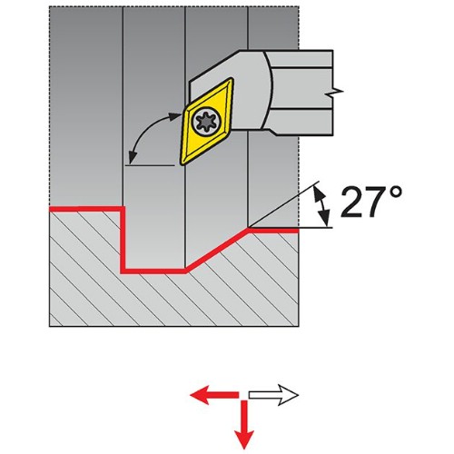 Hållare för invändig svarvning. Passande svarvskär: DCMT.