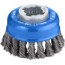 Axialborste av ståltråd. För tung rengöring av medelstora till stora metallytor, såsom borttagning av rost, grundfärg, målarfärg och fernissa. Passar vinkelslipar med X-Lock snabbfäste.