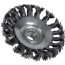 Konisk axialborste för ytbearbetning av metall och olegerade stål. Med centrumhål. Speciellt avsedd för svåråtkomliga utrymmen som kanter och hörn. För användning i vinkelslipmaskiner.