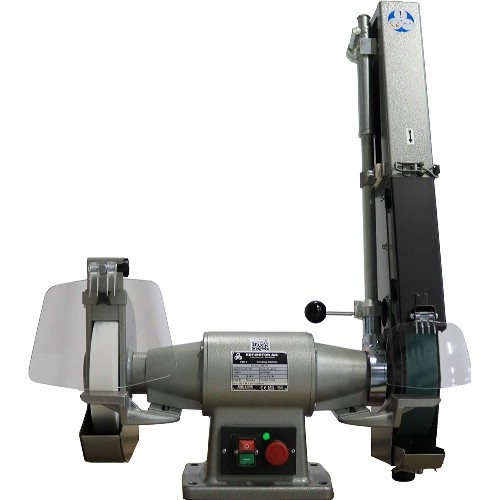 Kraftig benksliper med 3-faset 1100 W motor med en hastighet på 3000 o/min. Utviklet for tyngre slipearbeid i håndverk, verksteder og industri. Båndslipeenhet montert på høyre side og slipeskive på venstre side. Med motorbrems og kontinuerlig drift. Utstyrt med nullspenningsutløser. Motor og annet elektrisk utstyr i beskyttelsesklasse IP54. Leveres komplett med 1 slipeskive (korn 60), 1 båndslipeaggregat, justerbare slipestøtter, beskyttelsesglass, eksplosjonsbeskyttelse og flensskiver.