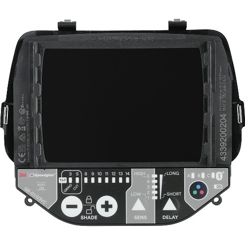 Automatiskt nedbländande svetsglas med siktyta på 109x73 mm. Passar för MMAW-, MIG/MAG- och TIG-svetsning, punktsvetsning samt plasmaskärning och slip- och skärläge. Avancerad elektronik med fyra bågsensorer, svetsglaset slår om på ett snabbt tillförlitligt sätt. Omslagstid från ljus till mörker på 0,1 ms. Variabel täthetsgrad 8-13, ljus täthetsgrad 2,5 och slip- och skärläge med täthetsgrad 5. Natural Colour-teknik, färger blir klarare och mer verklighetstrogna. Inställning för punktsvetsläge. UV/IR-skydd i fast läge med täthetsgrad 13. Tap-funktion för att aktivera slip- eller skärläge. Lättanvänd kontrollpanel, där man enkelt sköter funktionerna. Svetsglaset är också utrustat med Bluetooth-funktion, parkopplas enkelt till smarttelefon. Med appen 3M Connected Equipment finns det tillgång till ytterligare funktioner som att göra inställningar i svetsglaset, programmera minneslägen för olika svetsinställningar, få tillgång till användarmanual etc. Drivs av 1 st 3 V Litiumbatterier (CR2450).