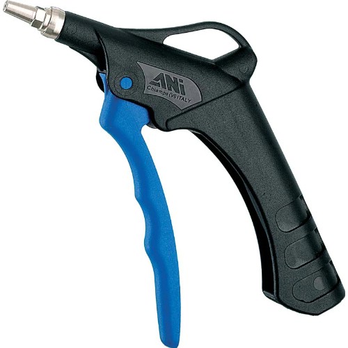 Greppvänlig renblåsningspistol med handtag av plast. Med böjd pip 90 mm av lättmetall. Låg vikt. Steglös reglering av luftmängden. Med upphängningsbygel.
